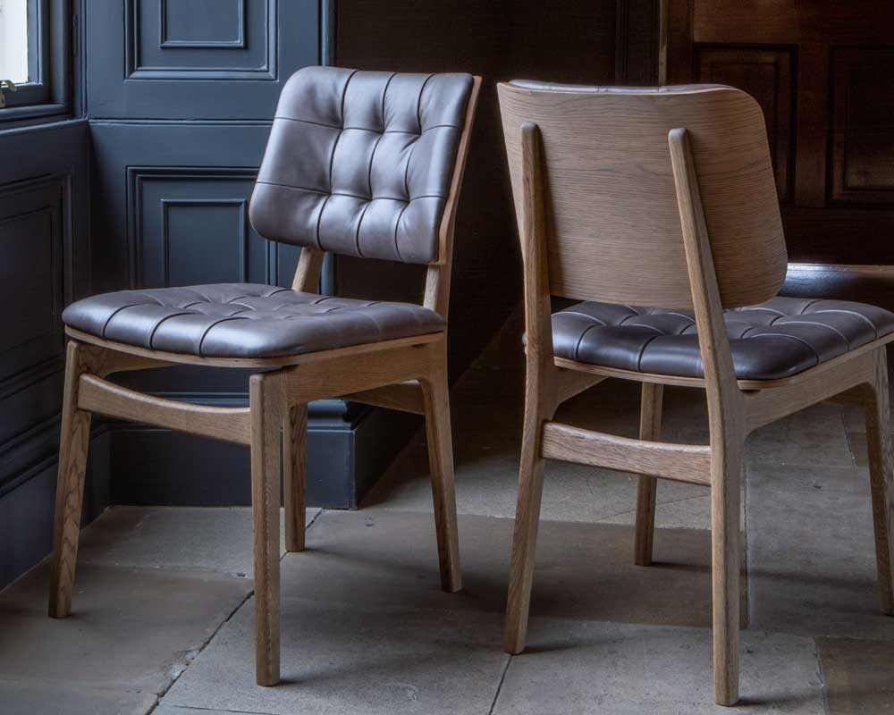Boden Chair – Grey Oil Finish with Upholstered Seat and Back in Grey Leather