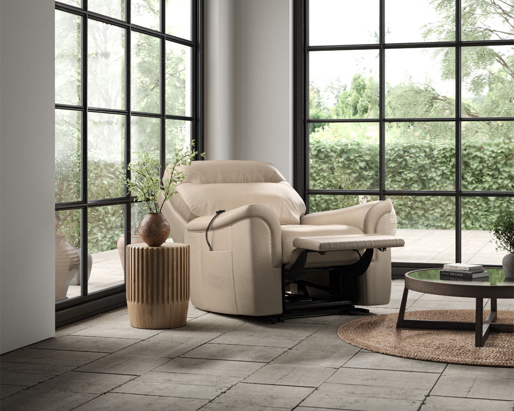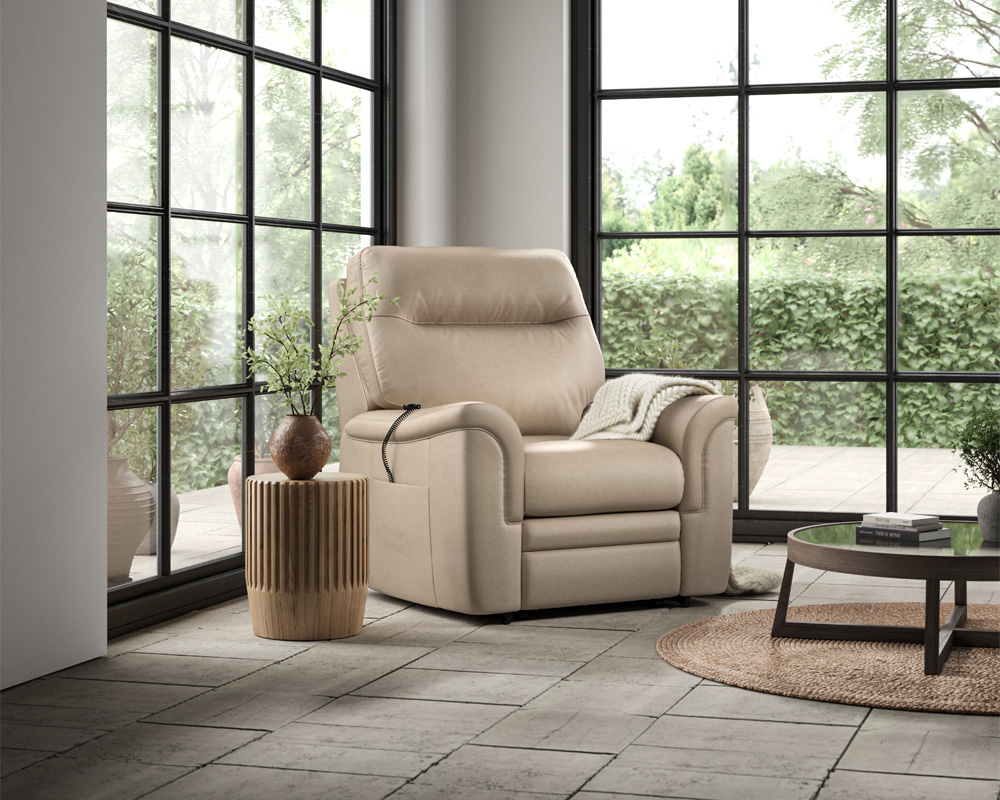 Ideal for hosting guests or unwinding at home, the Parker Knoll Hudson 23 Leather Rise & Recline Chair combines style and comfort effortlessly.